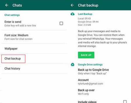 - 前往WhatsApp 设置 > 聊天 > 聊天备份。