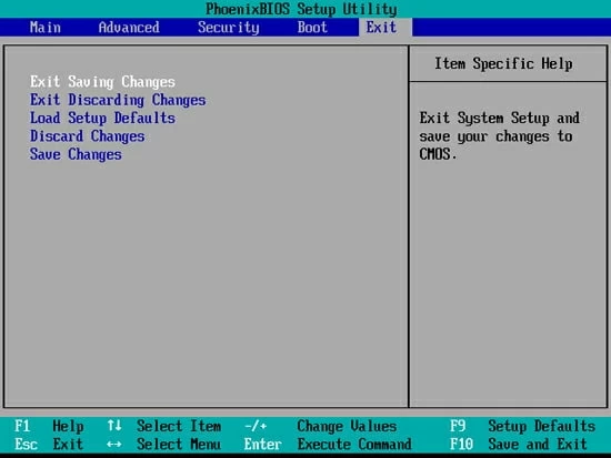 磷雷斯F10键保存设置并退出 BIOS。或者,导航至出口菜单并按退出保存更改(或类似的话)保存更改并重新启动计算机。