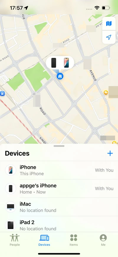 - 打开“查找我的应用程序”,然后点击设备在底部。您的 iPad 将被跟踪并显示在设备列表中。