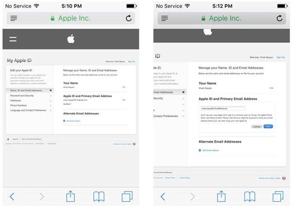 步骤 3.现在,您可以单击“Apple ID和主电子邮件地址”中的“编辑”选项,然后在空白区域中输入您想要更改的新电子邮件ID,然后点击“保存”以保存这些设置。