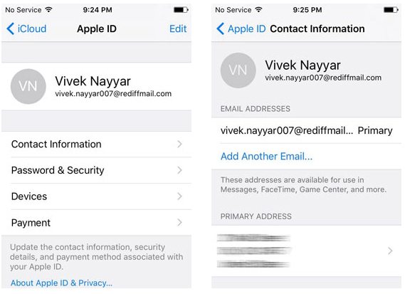 步骤2。选择“联系信息”,然后继续单击“电子邮件地址”>“添加另一个电子邮件”以添加新的未使用的电子邮件 ID。