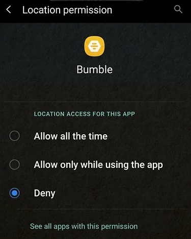 您无法删除 Bumble 上的位置,但可以更改它或允许该应用仅在打开时访问您的位置。