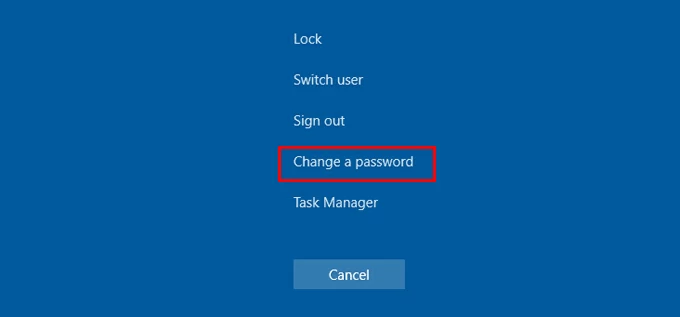 在 Windows 桌面上,按Ctrl + Alt + Del键盘组合显示一个菜单,其中“更改密码”是选项之一。如果您没有看到此内容,则意味着您正在使用在线帐户;并且此方法不适用于 Microsoft 密码重置。