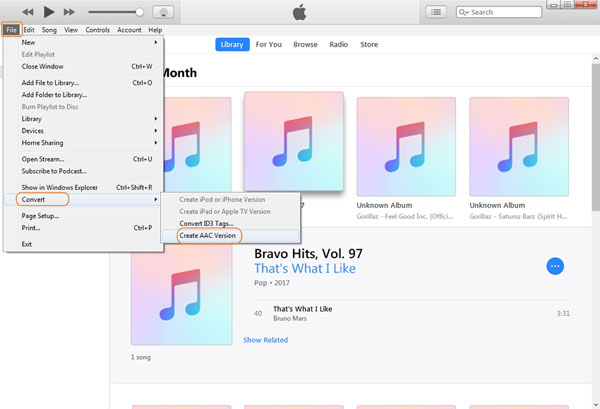 步骤3。转到顶部菜单并选择“文件”>“转换”>“创建 AAC 版本”。之后,只需将文件复制并粘贴到桌面即可。