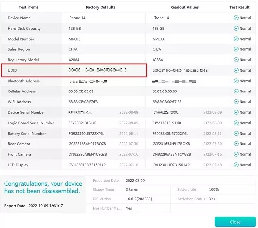 详细的测试报告:提供一份详尽的报告,以指示您的iPhone是已拆卸还是修复的。