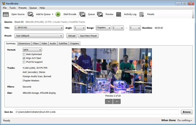 Handbrake可用于Mac,Windows和Linux,是一个开源和免费的视频转换器软件程序,具有许多高级功能。它几乎可以将您梦dream以求的任何视频文件转换为您可以使用Handbrake上的Mac或PC上的MP4视频,以及不含任何类型的保护措施的DVD或Blu-ray Disc。它还包括菜单项中的一些高级选项,以微调视频编码设置,选择面向设备的预设并编辑视频。