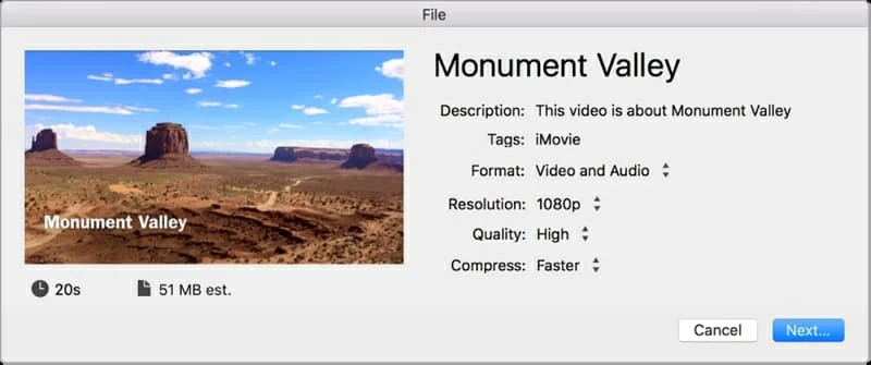 注意:默认情况下,iMovie将以MP4的形式导出电影,除了将“质量”设置为最佳质量(Pro Res),这将渲染到更适合编辑的MOV文件。