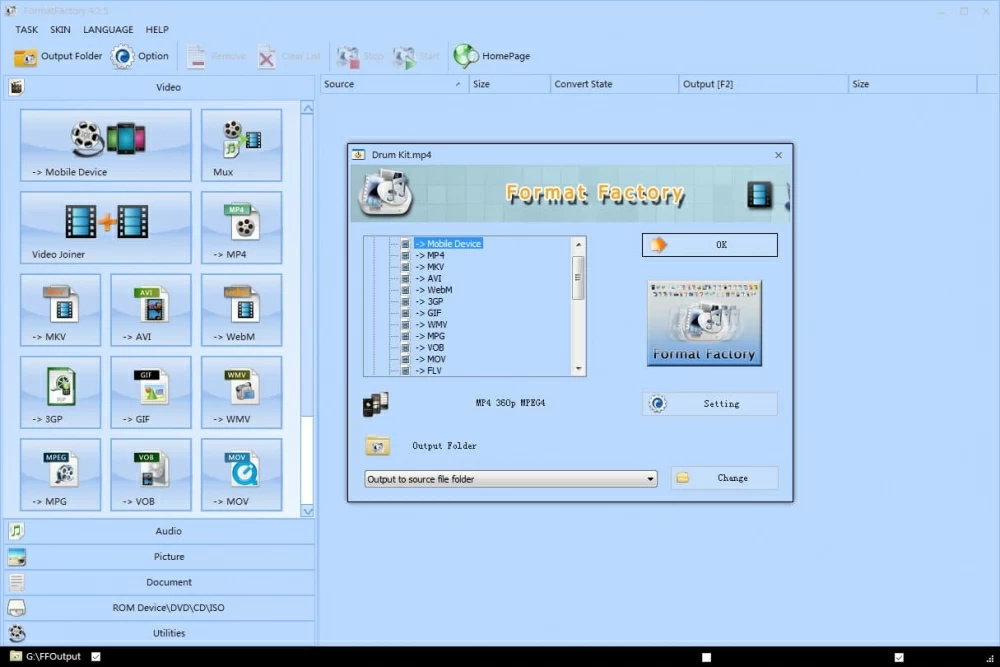 网络上仍然有很多替代方案来转换 AVCHD .mts 文件。如果您只想要一个免费的 MTS 到 MP4 转换器,那么 Format Factory (官方网站)被认为是最好的之一。