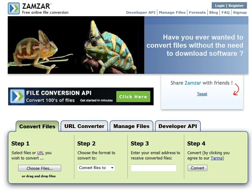 Zamzar — 免费在线 MTS 到 MP4 转换器
