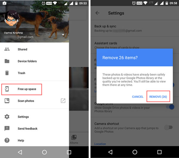 此方法对于 iOS 和 Android 用户都很友好。删除照片可以节省您 Google 帐户中的存储空间,并会显示存储空间估算值。已删除的备份项目会在垃圾箱中保留 60 天。对于 Android 11 及更高版本,未备份的已删除项目会在垃圾箱中保留 30 天。实现方法如下: