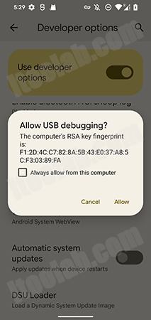 第5步:现在,您将在设备上看到调试提示。点击允许授予调试访问权限。