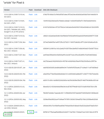 下载设备的正确出厂映像是在三星上从 Android 13 降级到 12 的必要步骤。它在运行时充当设备的空白板。您可以从 Google 的 Factory Image OTA 托管网站找到所有与 Pixel 兼容的快照。
