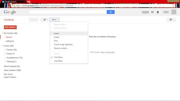 步骤4。在网络浏览器主页上找到“更多”选项并单击它。然后,这会将您重定向到一个新窗口,您可以从中选择“导入”选项。请在出现提示时继续选择之前下载的 vCard。