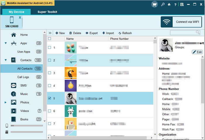 因此,对于有兴趣将三星手机上的联系人信息发送到 CSV 文件的用户,以下是有关软件产品的一些信息,该软件产品提供了根据手机上存储的手机数据创建 CSV 所需的特性和功能。这个软件的名字叫做Android 版 MobileKin 助手或者Android 助手(Mac 版)。它具有多种不同的功能来管理 Android 数据,并且可用于多种操作系统,包括 Windows 和 Mac。在 MobileKin 提供的软件应用程序中,用户将拥有备份手机数据、将数据传输到其他设备或计算机(例如台式机)等所需的功能。