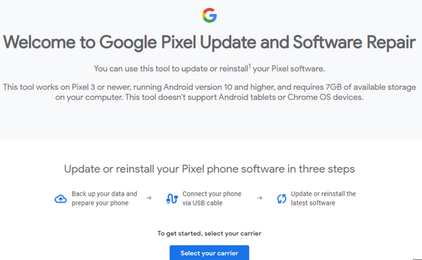 这更新和软件修复工具由 Google 提供,可用于Google Pixel 3 及更新机型,帮助解决 Pixel 设备上的软件问题。它允许用户更新软件并执行出厂重置,将设备恢复到原始设置。该工具对于修复主要软件问题或无法访问设置菜单时特别有用。使用方法如下: