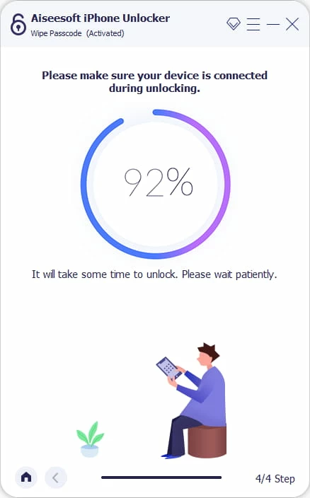 步骤 4。进入0000在弹出框中并点击开锁按钮可将 iPhone 17 恢复出厂设置。