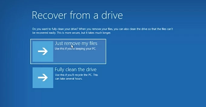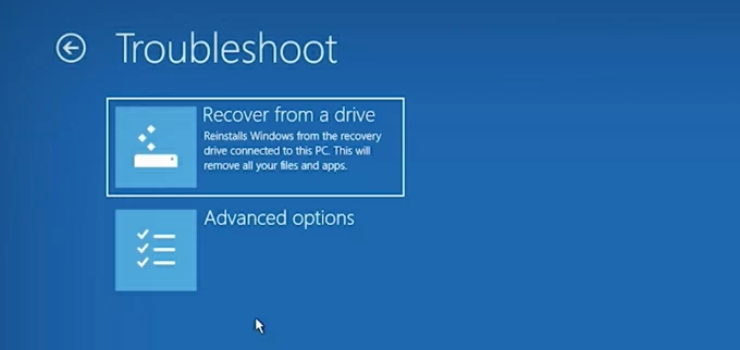 7. 按照屏幕上的教程进行操作,单击故障排除>从驱动器恢复。