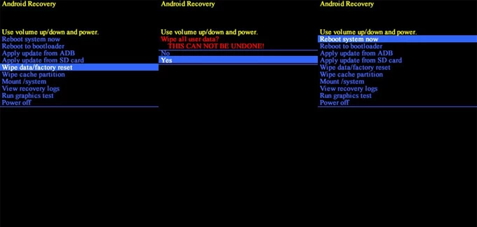 5-选择是的当要求擦除所有用户数据时,使用音量按钮和电源按钮。