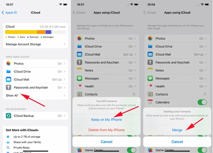 默认情况下,设置中的“通讯录”选项设置为与 iCloud 同步。如果您没有手动关闭它,您也许可以通过合并手机上的现有联系人和 iCloud 中的联系人来找到丢失的旧联系人。