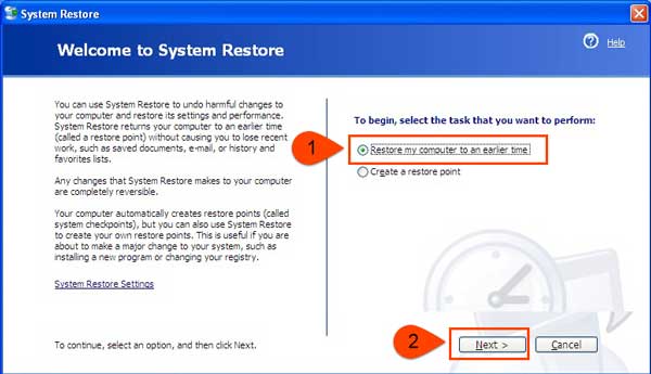 3. 然后您可能会看到一个新窗口,选择“将我的计算机恢复到较早的时间”选项,然后单击“下一步”。