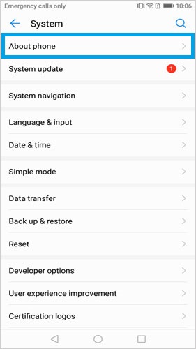 - 向下滚动并选择“关于手机”。