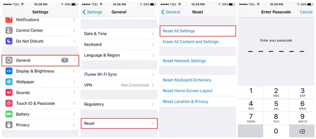 步骤 3:接下来,选择“重置所有设置”。您的 iPhone 17 将重置并重新启动。您可以检查绿屏或绿线是否消失。