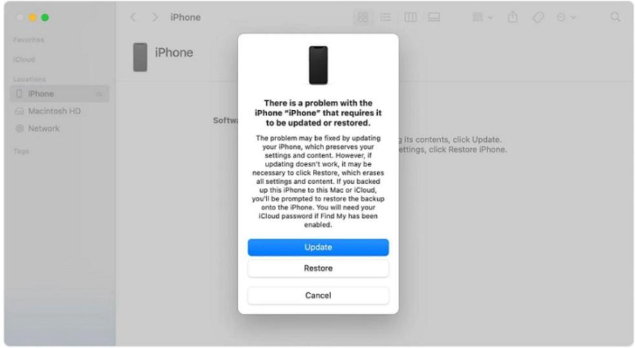 步骤3:iTunes(或 Finder)现在应该检测到处于恢复模式的设备。