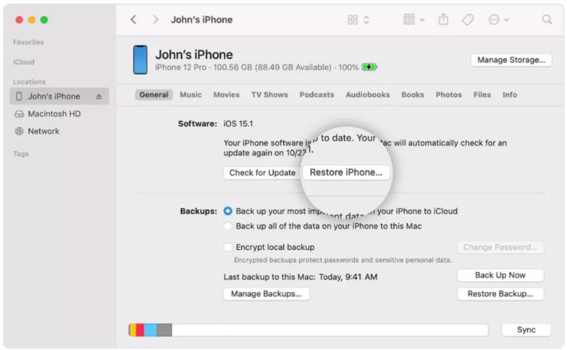 2.4 使用 iTunes 或 Finder 恢复 iPhone 17