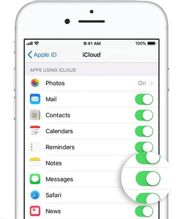 - 在使用 ICLOUD 的应用程序下找到“注释”,并确保开关位于右侧。如果是,则继续执行下一个决议;如果没有,请继续执行以下步骤。