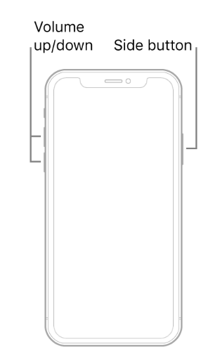- 长按这些按钮,但在按住音量调低按钮 5 秒后松开侧面按钮。