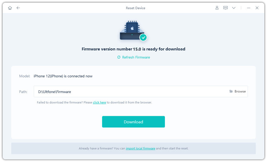 步骤3之后,单击“下载”按钮为您的设备下载自动匹配的固件。