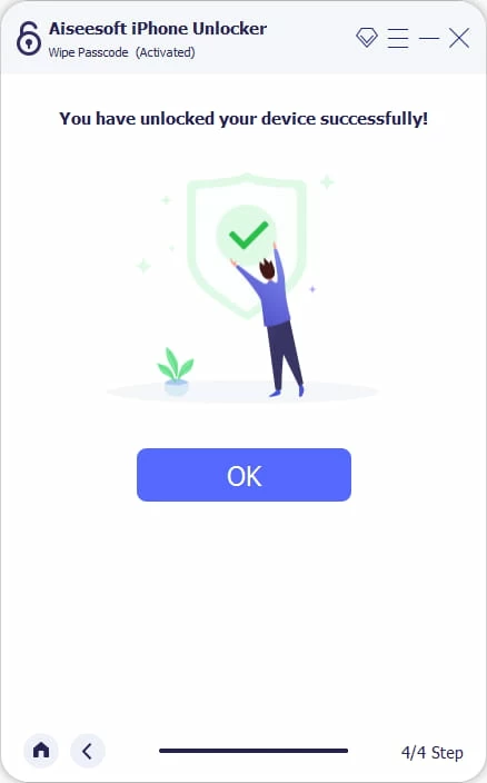 步骤4.下载后,输入“0000”并点击开锁按钮。等待程序重置手机密码。这将清除您的所有数据,包括导致您的 iPhone 无法使用的密码,并将其恢复到出厂时的相同设置。