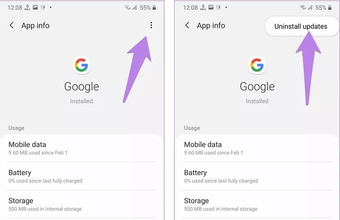 如果您的设备在更新 Google 应用后开始闪烁,系统 UI 没有响应,则很可能是应用的更新版本导致了该问题。在这种情况下,您只需卸载 Google 更新即可解决该错误。为此,请转到“设置”>“应用程序”并选择“Google”应用程序。然后单击“卸载更新”按钮从您的设备中删除最新更新。最后,重新启动智能手机并检查问题是否解决。