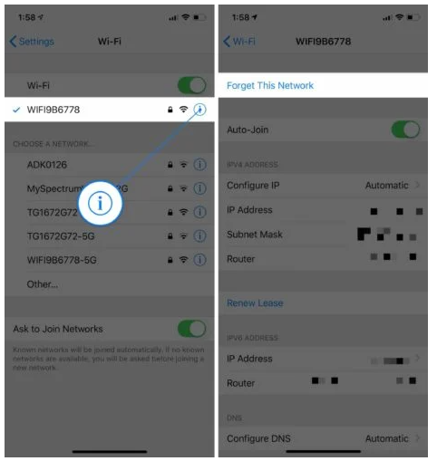 - 然后,点击“忘记此网络”并通过点击“忘记网络”进行确认。