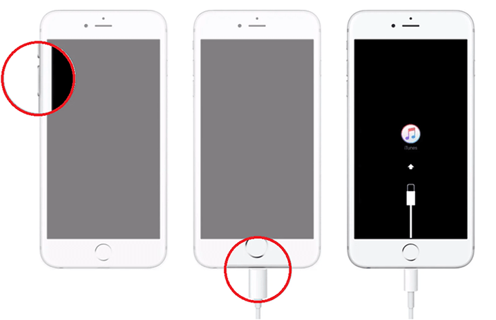3. 将 USB 数据线连接到 iPhone 时按住主屏幕按钮。