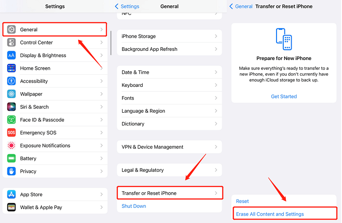 重置iPhone以解决安装iOS 17的错误是最后的手段。但是,请记住,这将导致数据丢失。谨慎行事并遵循以下步骤: