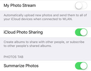 事实上,很少有人知道,iPhone 上的照片流可以在连接 WiFi 时自动将您最近的 1000 张照片同步到所有 iCloud 设备,这意味着这些照片将占用您设备上至少 1 GB 的空间。因此,如果您不需要将 iPhone 中的照片共享到其他设备,只需禁用照片流即可释放 iPhone 上的存储空间,而无需删除任何内容。