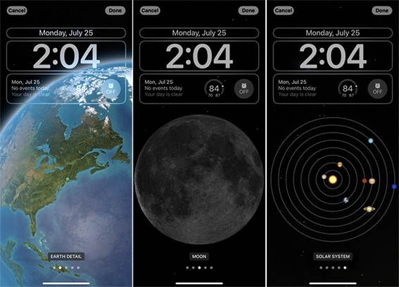 关于iOS 16地球壁纸的最好部分是iPhone解锁时在屏幕上播放的动画。例如,如果您在锁定屏幕上滑动以解锁iPhone,则月球或地球(取决于您选择的锁定屏幕壁纸),将出现在屏幕的底部。