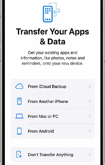 6. 擦除后,将 iPhone 设置为新 iPhone 或从 iCloud/iTunes 备份(如果可用)恢复。