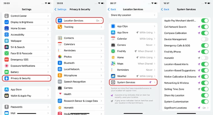 通过关闭“共享我的位置”、禁用特定应用程序的位置服务、调整系统服务以及使用飞行模式,您可以隐藏您的 iPhone 位置而不让其他人知道。