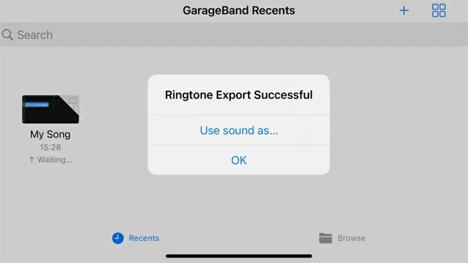 10.导出后,选择使用声音作为在弹出窗口中。您可以选择标准铃声立即将其设置为您的新手机铃声。您还可以将其分配给联系人或将其添加到您的铃声库。