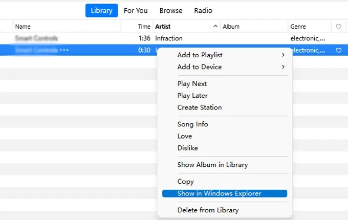 6. 一个新的 30 秒 AAC 剪辑将出现在您的媒体库中。右键单击它并选择在 Windows 资源管理器中显示。