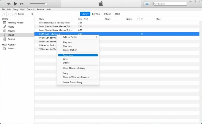 3. 右键单击曲目,选择歌曲信息,然后转到选项弹出窗口中的选项卡。