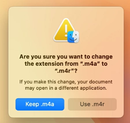 7. 将音频剪辑的文件扩展名更改为.m4r因此 iTunes 将其识别为铃声格式。