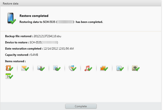 4.最后单击“完成”按钮完成恢复过程,然后重新启动三星。