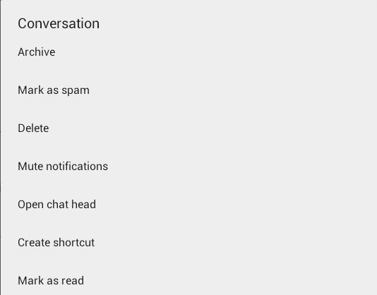 步骤 2. 点击想要的对话并按住直到弹出新窗口。您可以在窗口中看到许多选项,例如存档、标记为垃圾邮件、删除、静音通知、标记为未读等。只需选择存档即可。