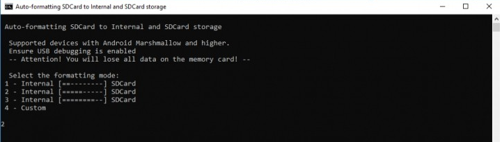 - 选择以下 SD 卡分配选项之一:10% 内部、90% SD 卡; 50%内置,50%SD卡; 90% 内置,10% SD 卡。