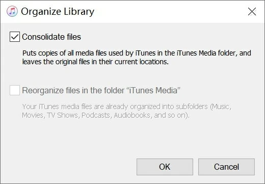 - 确保您有足够的可用存储空间,因为合并文件将在 iTunes 媒体文件夹中创建一组重复的文件。