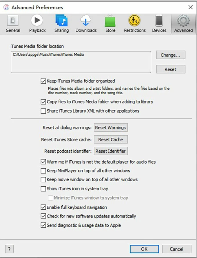 提示:通常,iTunes Media 文件夹存储在默认位置:[用户文件夹]MusiciTunes iTunes Media。但是,用户有时可能会更改其存储位置,导致实际位置与默认位置不匹配。