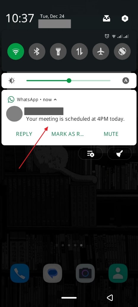 指示:当您拉下通知面板时,您可以访问 WhatsApp 通知,您可以在其中阅读消息而无需提醒发件人。